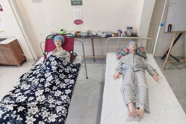 The College has a Nursing Foundation Lab with essential equipment for learning basic nursing procedures.